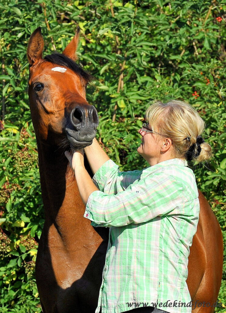 Die Supervision mit einem langjährigen Homöopathen bringt eine nicht unerhebliche Qualität in die homöopathische Praxis. Die Supervision in Hamburg ergab Lycopodium C200. Lycopodium ist selbstbewusst, dominant und verlangt einen konsequenten, einfühlsamen Reiter. Es sind fleißige Tiere, die ohne Leckerlis auskommen. Bei schlechter Laune sollte das Tier mit Vorsicht behandelt werden, da es unberechenbar werden kann. Mit dem Lycopodium, was nach 3 Monaten erneut gegeben wurde, besserte sich seine Aggressivität seinen Menschen gegenüber. Zur Abrundung der Therapie brauchte Bashir nur noch einen lieben, einfühlsamen Menschen, der sich mit ihm beschäftigt und arbeitet.